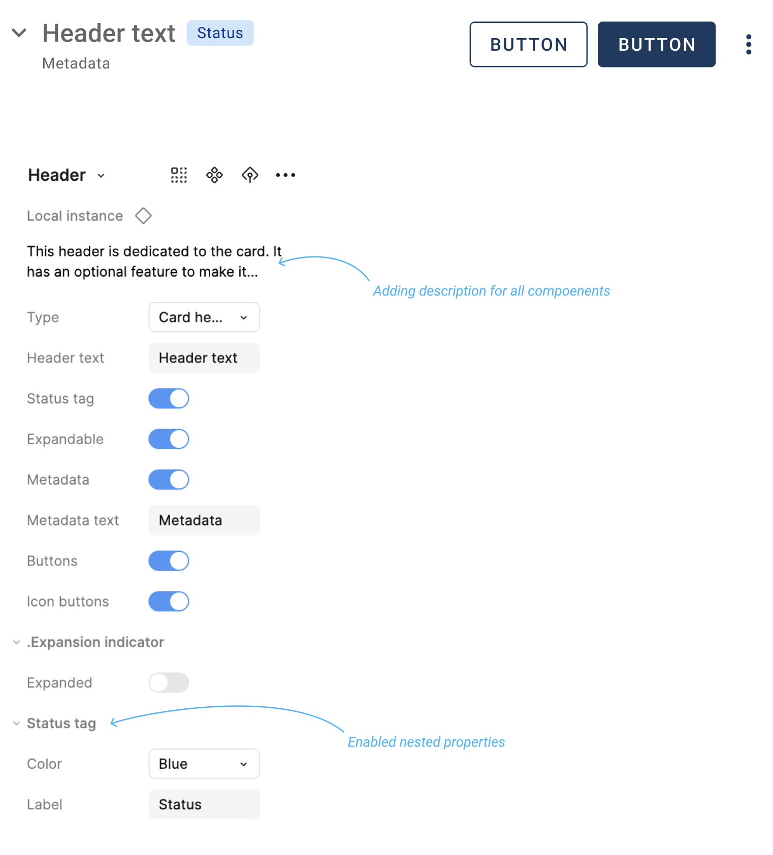 Here are the properties of the header component.